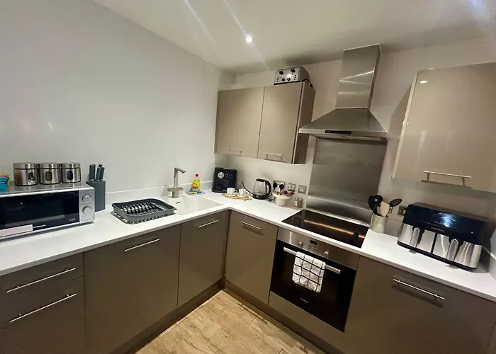 Die Gäste dieser Villa in Birmingham können ihre eigenen Mahlzeiten in einer kompletten Küche zubereiten. Das Restaurant Pitcher & Piano, wo britische Gerichte serviert werden, ist in unmittelbarer Nähe zur Unterkunft in Birmingham. Der nächstgelegene Flughafen ist Birmingham, der 20 km von der Villa Apartment 3 entfernt ist, und der Bahnhof Five Ways ist etwa 20 Gehminuten von der Unterkunft entfernt.